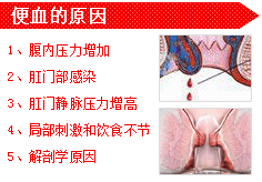 1、肛门疾病:痔疮、肛裂引起的便血都是便后滴血,严重的可以喷血,血色鲜红,血与粪便不混和,肛裂引起的便血常伴有排便后肛门痛疼。