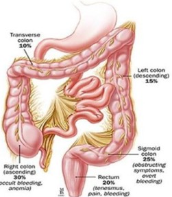 必须便血呈鲜红色,滴状附于大便表面;晚期伴有肛门直肠下坠和全身消瘦,大便次数增加,便秘与腹泻交替出现。