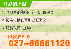 饮食因素:长期饮酒或喜食辛辣食品的人,饮酒和辛辣食物可刺激消化道粘膜,造成血管扩张,导致肛裂的发生。 >>>肛裂出血的症状主要有哪些?